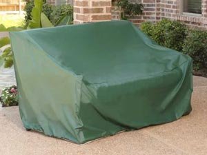 We are keeping pace with the patio furniture manufacturers byoffering several CoverMates Classic outdoor sofa and loveseat covers. Available in both 2 and 3 seat sizes, the dimensions range from 50 inches to 96 inches long and from 30 inches to 42 inches deep. All Classic outdoor sofa covers protect your furniture and cushions from the sun and are also as water-resistant as you can find. If you don't see your size from the drop down menu above, we invite you to see our bench & glider covers for more selection.CoverMates Classic outdoor sofa covers are constructed so well that they carry a two-year warranty. They are made from 12 gaugecommercial quality vinyl with a durable polyester inner lining that does not absorb moisture. Together, they guard against most of the weather Mother Nature can dish out, including protection from the heat, rain and snow, dust and dirt, rodents and tree sap. Classic patio sofa covers are hunter green in color, so they're a perfect match for any backyard setting. All CoverMates patio sofa covers have mesh vents, which help the cover "breathe" to reduce the possibility of mold and mildew. Our vents also keep heat from building up underneath the cover and allow the wind a way of getting out, which will minimize "ballooning". In addition, a strong elastic band around the bottom of our patio sofa covers keeps them in place at all times. Read more...